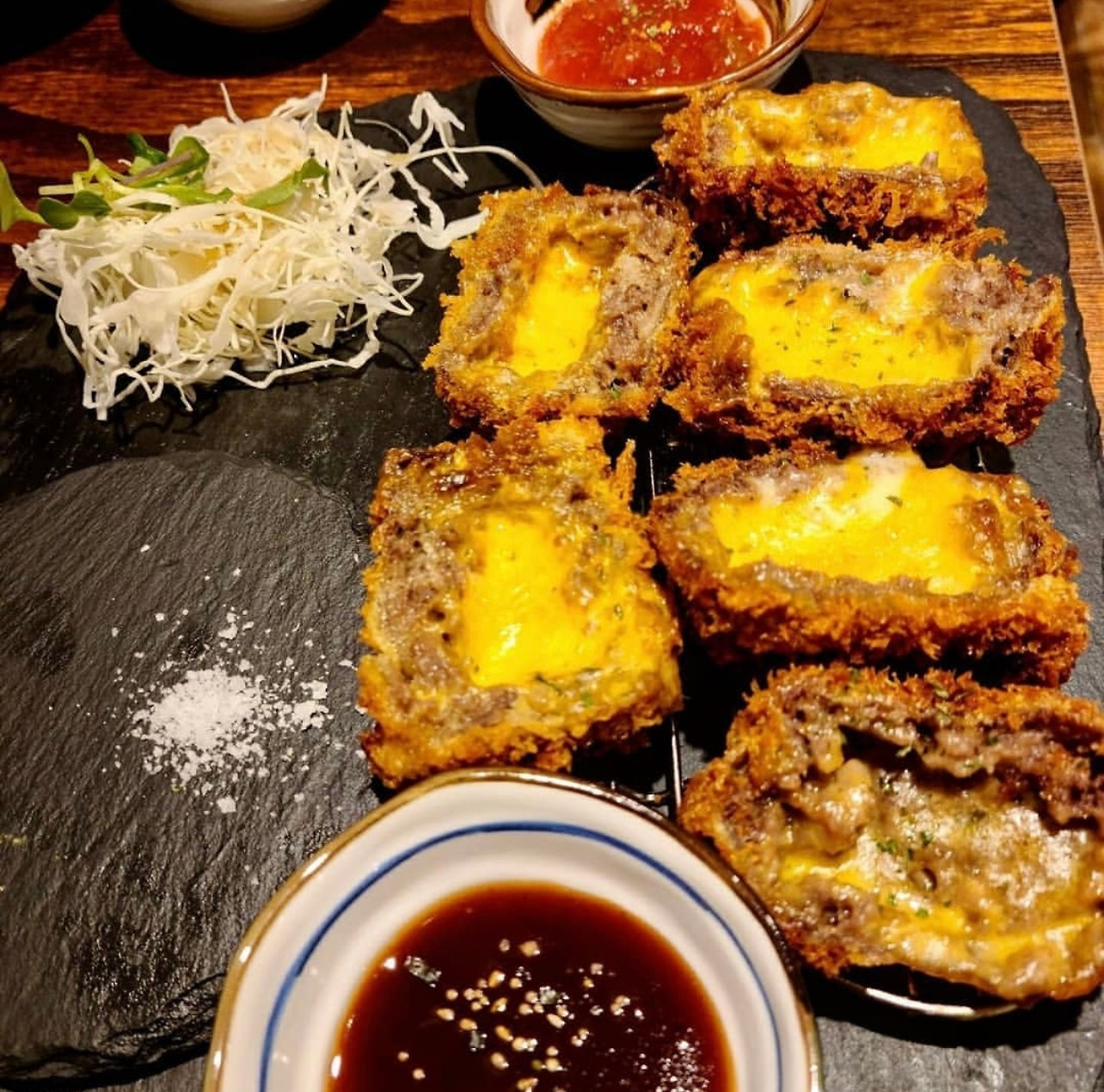 시킨 지 얼마 안되서 시킨 메뉴들이 모두 나왔다. 치즈가 굳기 전에 빨리 먹어야 해라는 일념으로 냉큼 소고기치즈가츠를 한입 베어 먹는다. 고소한 체다의 치즈향과 찐득하게 늘어나는 모짜렐라의 맛이 동시에 느껴졌다. 거기에 살살 녹은 소고기의 육질까지. 정신을 차리고 보니 한 개 밖에 남지 않았다.