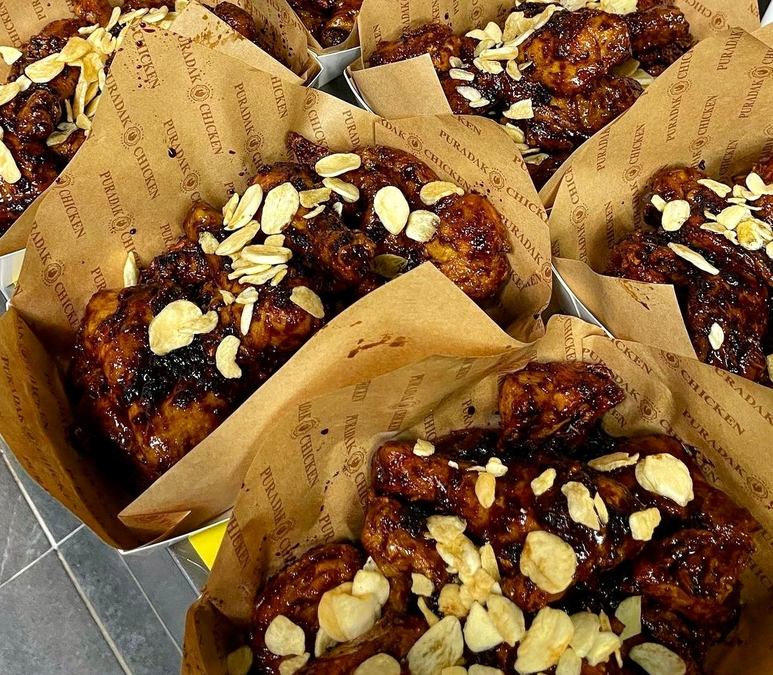 튀긴 닭에서는 절대로 낼 수 없는 그 촉촉한 닭살, 달큰한 푸라닭만의 비법 간장소스, 그리고 바삭 구운 고소한 마늘. 이것이 블랙 올리브의 완벽한 맛의 조화다.