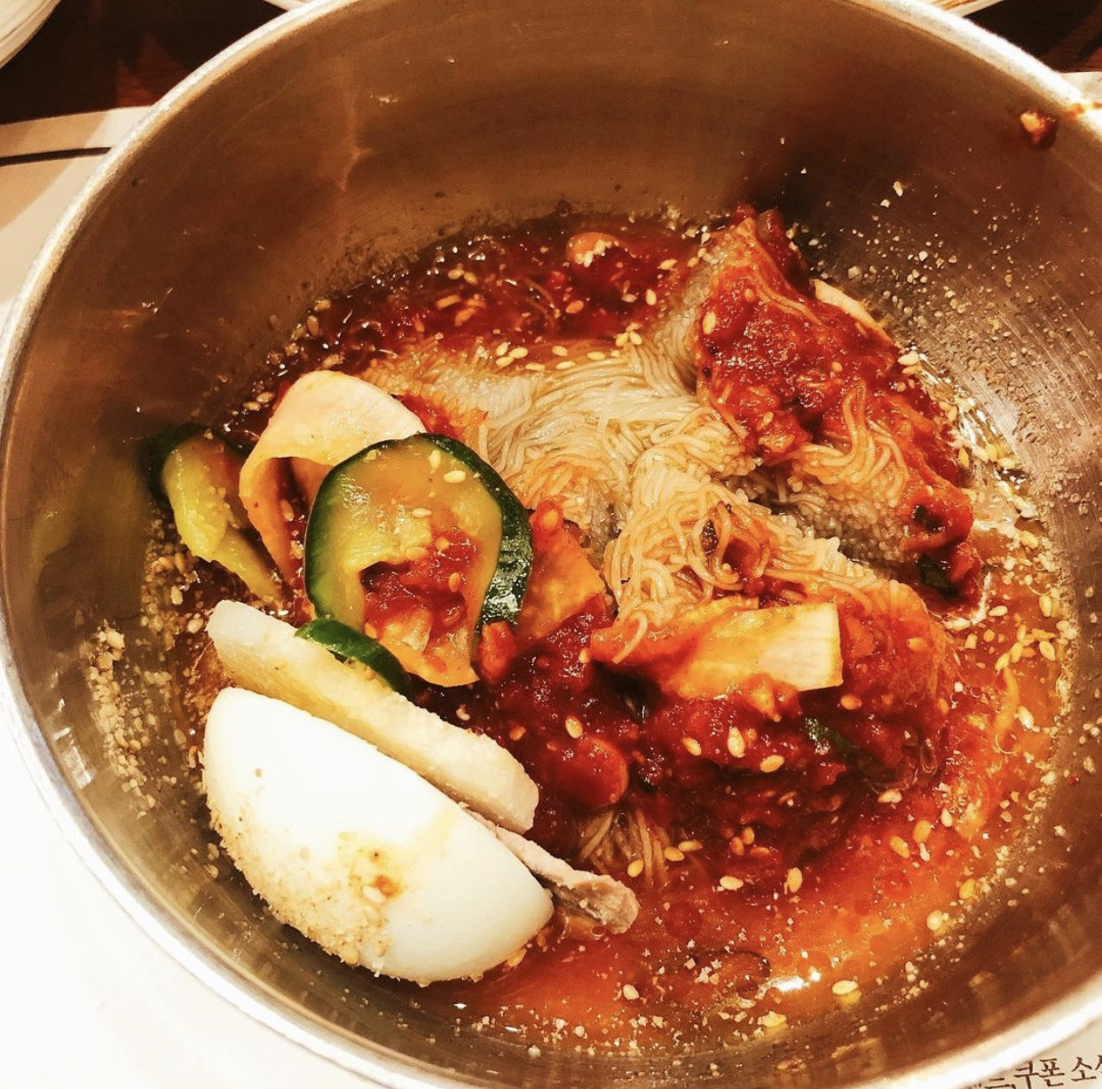 입안의 기름은 역시 시원한 랭면으로 닦아 주어야 제 맛 아니던가. 비빔냉면을 시켜본다.
