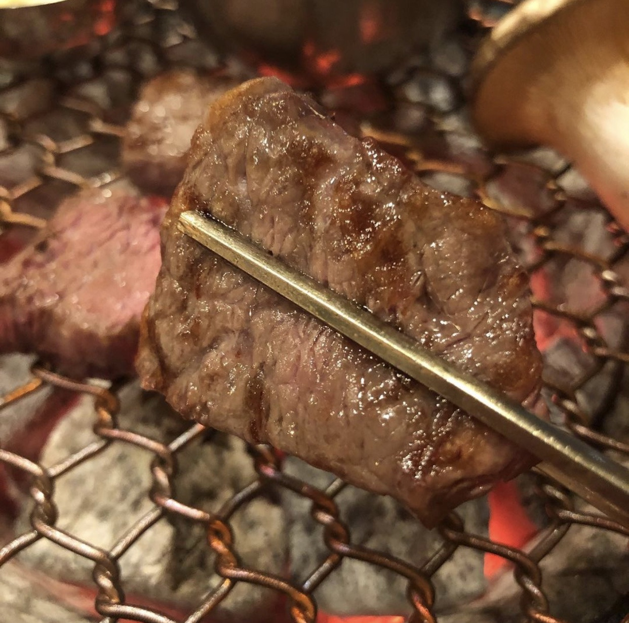정교한 작업을 위해 마음을 가다듬고 가위와 집게를 양 손에 쥔다. 소고기란 본디 예민하여 살짝만 그 타이밍을 늦추어도 철판에 늘러 붙고, 질겨 지기 쉽상이다. 지글지글 연기를 피워내며 고기의 핏기가 약간 위에 모였을 그때가 바로 적기이다. 얼른 뒤집어 살짝만 익혀 입안에 쏙 넣어야 한다.