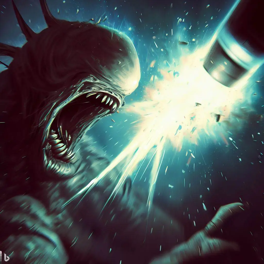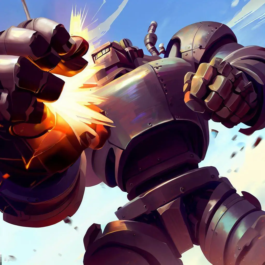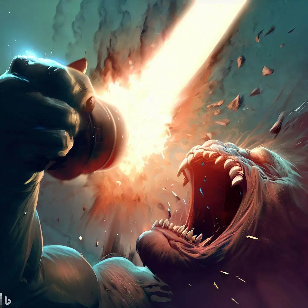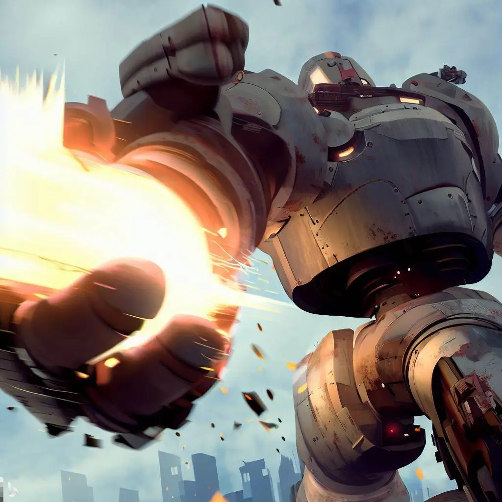 강력한 로켓 펀치를 맞은 괴수를 괴로워합니다