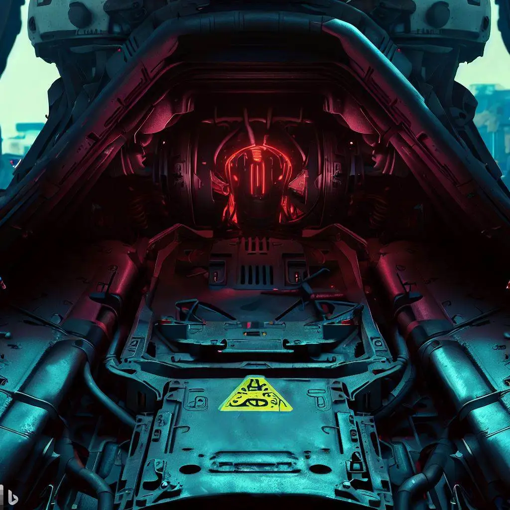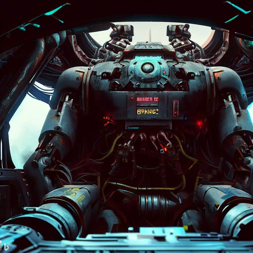 뒤로 보이는 로봇의 조종석