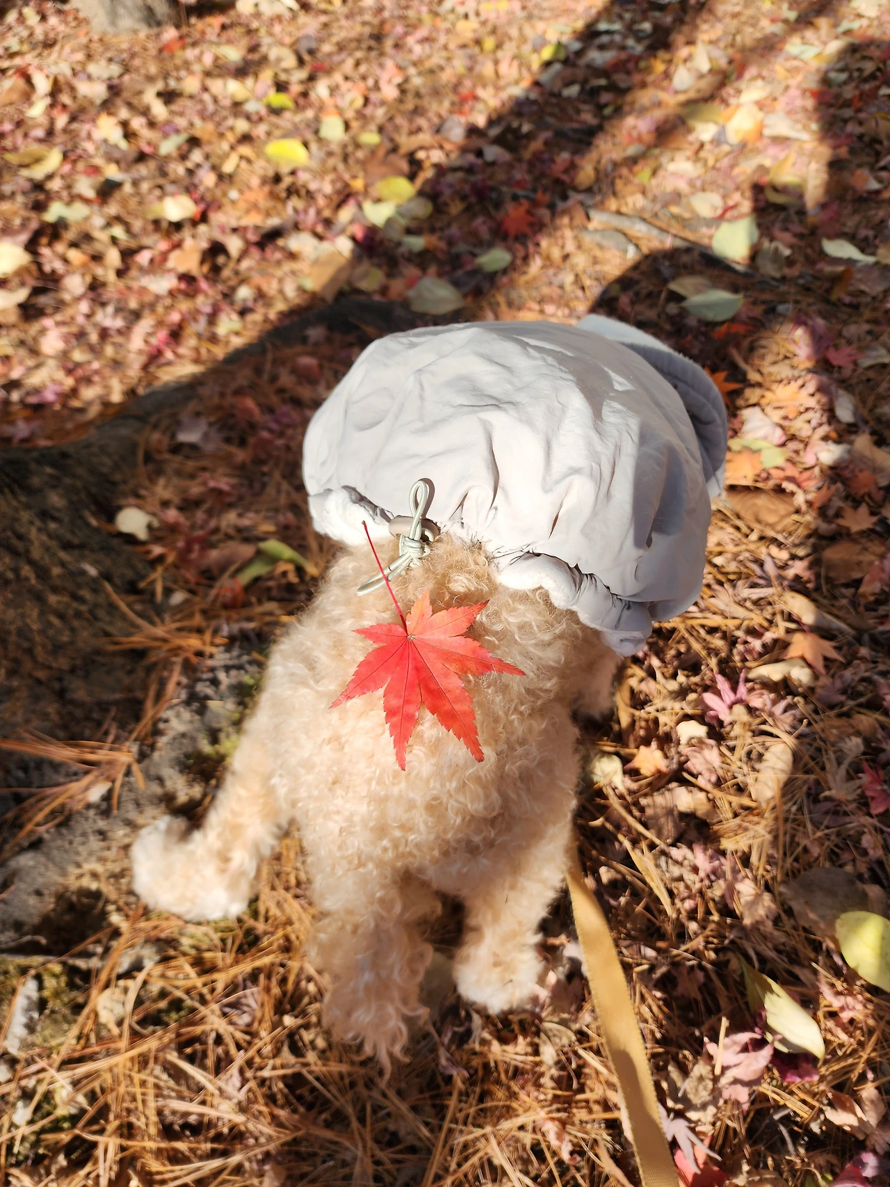 단풍잎이 쏘피의 엉덩이 털 색깔과 제법 잘 어울린다.