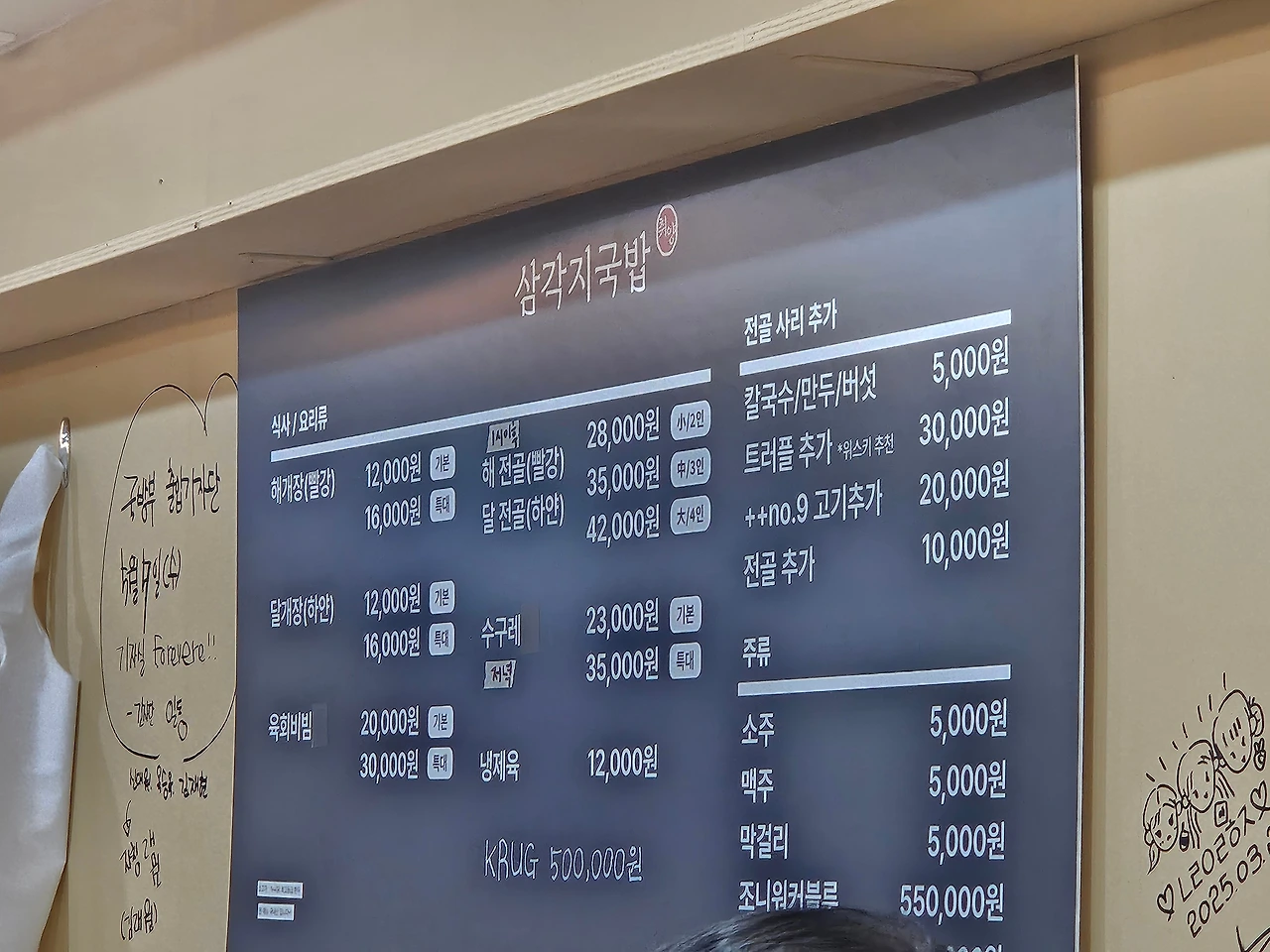 사장님은 매우 친절하다. 남자 사장님은 주방에 계시고, 여자 사장님이 서빙을 맡으신다. 가게 내부는 깨끗하고 잘 정돈돼 있다. 벽면에는 정용진이 찾는 맛집이라는 문구, 신동엽의 사진 등이 있다. 그리고 이 사람, 저 사람의 낙서가 있다. 나도 하나 새길까 하다가 유난스러워 보일까 봐 멈췄다.