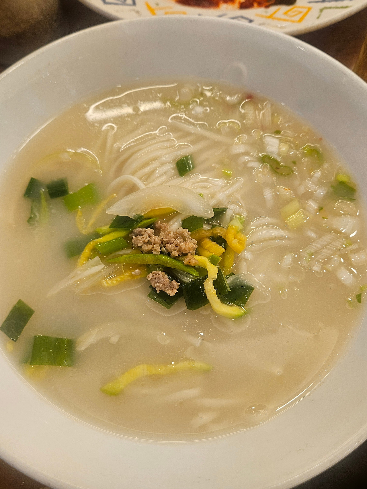 칼국수 국물은 돼지를 우려낸 맛인 건지 진하고 깊다. 국물을 한 입, 두 입 먹다 보면 계속 들어가서 바닥이 금방 보인다. 면도 그렇게 두껍지 않고 국물과 잘 조화가 돼서 김치까지 얹어 먹으면 한입 뚝딱이다. 글을 쓰는 지금도 먹고 싶어 지는 그런 맛이다.