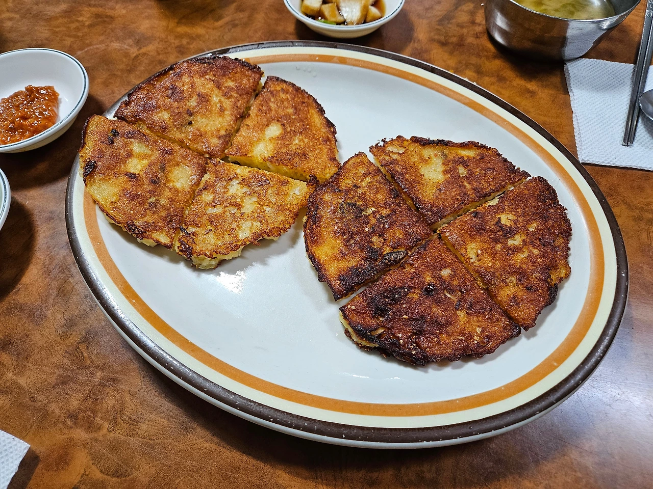 순두부찌개도 맛있다고 하고, 전도 가볍게 먹기 좋으니 보쌈과 찌개, 녹두빈대떡을 같이 시켜준다. 파전을 먹고 싶었지만 이날 하필 파가 다 떨어졌다고 하셨다.