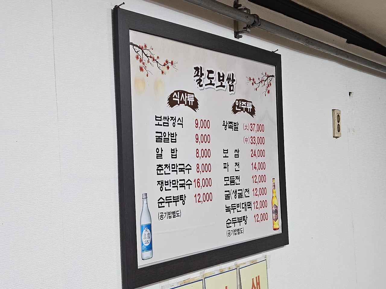 과거 좌식이었던 것 같은데 지금은 책상이 놓인 자리에 앉아서 메뉴판을 살펴본다. 가격은 정말 착하다. 다른 보쌈집이 2000~5000원까지 가격을 올릴 때 이 집은 아직 1만원 이하의 보쌈정식을 유지하고 있다.