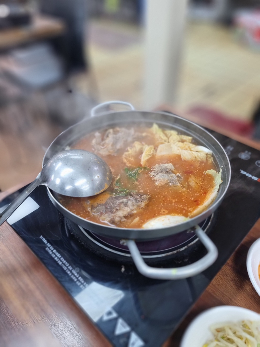 반찬은 간단하다. 콩나물과 고추, 양파가 나온다. 예전에는 꼬막을 1~2개 정도 서비스로 줬었는데, 요즘엔 안 주는 것 같다. 이 집의 하이라이트는 감자탕이다.
