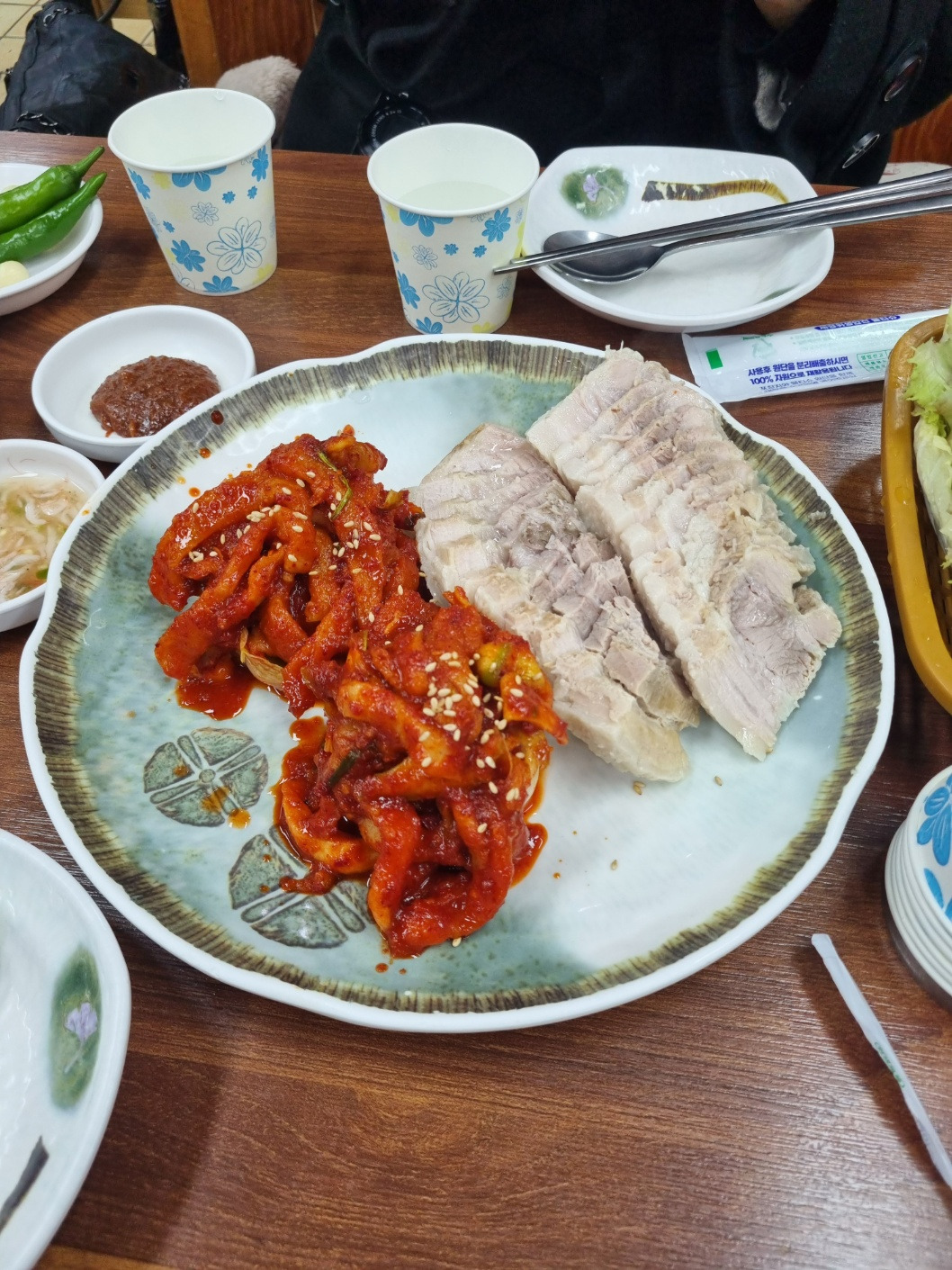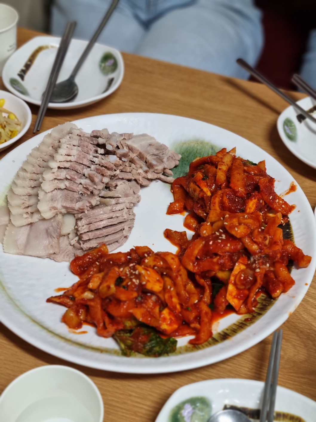 굴보쌈을 먹기 위해 이곳을 많이 찾곤 한다. 하지만 고기보쌈도 메뉴에 있다. 부위가 삼겹살인데도 가격이 싼 편이다. 수입산, 그중에서도 독일산 고기를 쓰는 거로 기억한다. 고기만 온전히 즐기기 위해 고기보쌈을 시킨다.