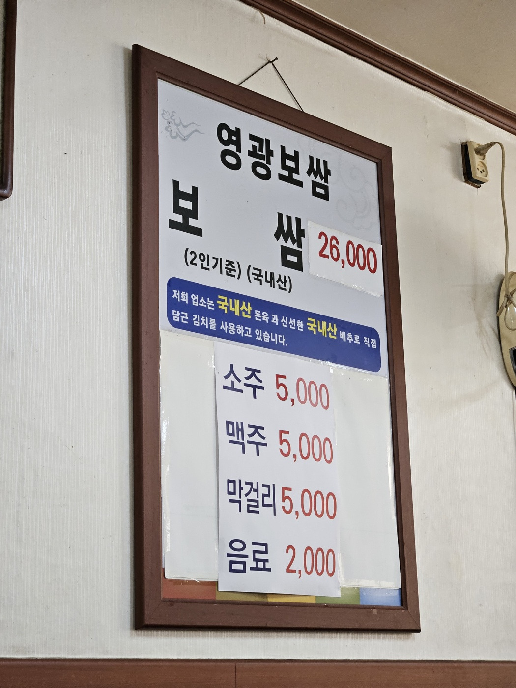 서울 마포구 공덕동 영광보쌈 메뉴판