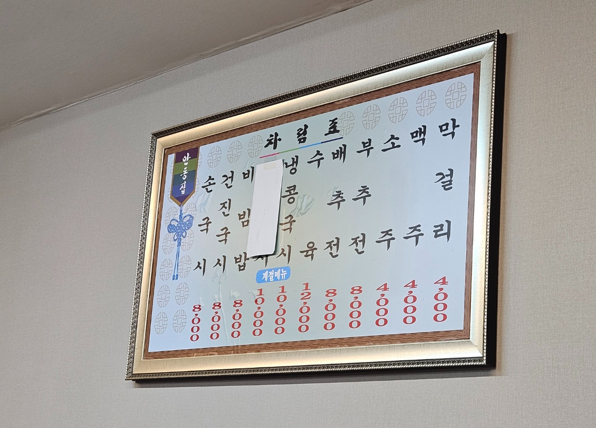 서울 동대문구 제기동 안동집손칼국시 내부 메뉴판