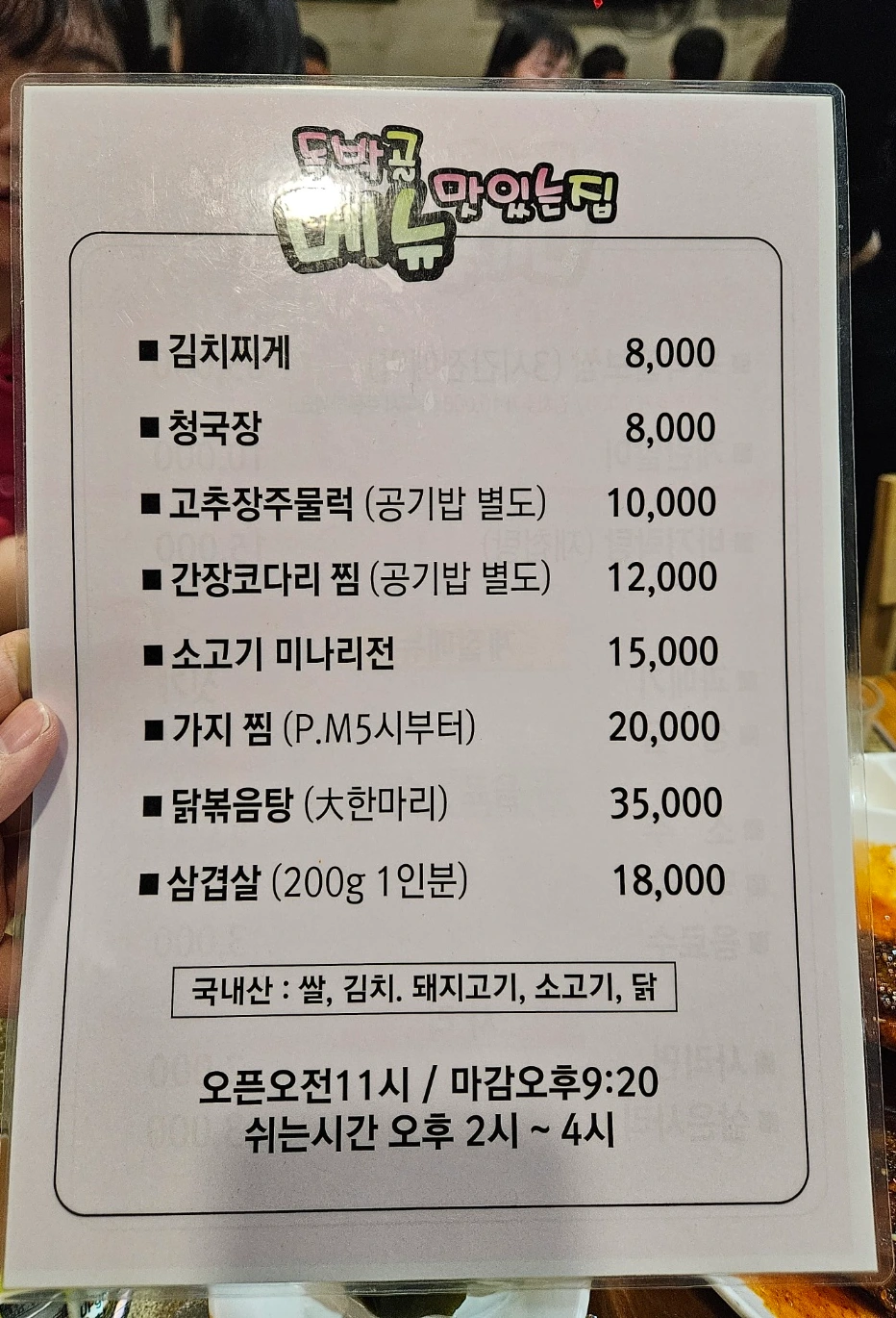 서울 서대문구 충현동 독박골맛있는집 메뉴판