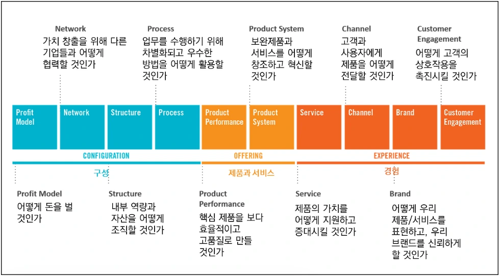 Offering (제품/서비스) 5. Product Performance: 제품 성능 6. Product System: 제품 시스템