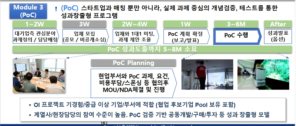 PoC 기간은 통상 2~3개월, 아무리 길어도 6개월 이내가 적정하죠. 너무 짧으면 제대로 검증이 안 되고, 너무 길면 동력을 유지하기 어렵습니다.