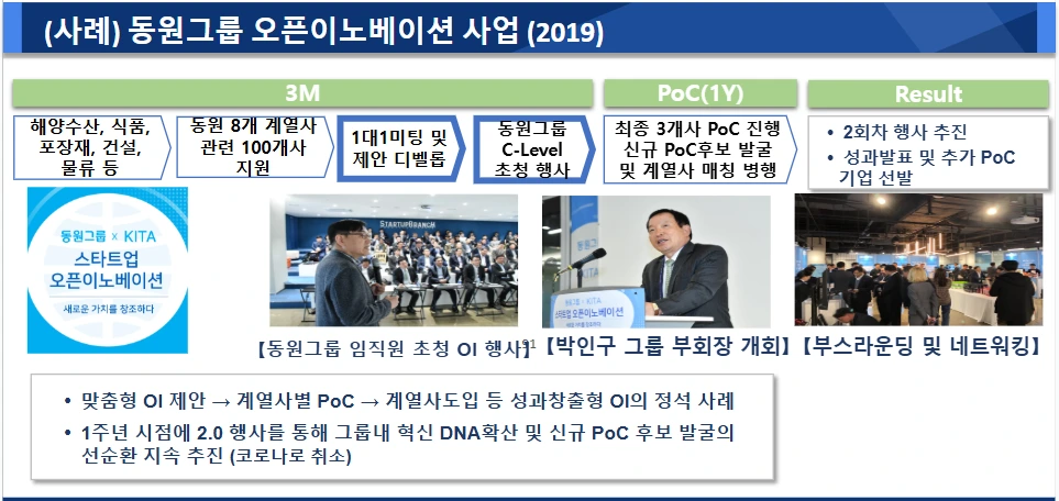 앞서 거듭 언급했듯, 오픈이노베이션 프로젝트는 단발성 이벤트가 아닙니다. 사업 개시 데모데이 → 중간보고회 → 성과공유회로 이어지는 일련의 과정을 전략적으로 배치하면 프로젝트가 힘을 받습니다.