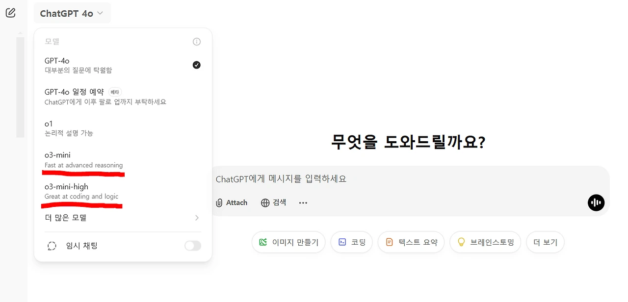 오픈AI가 Chat GPT o3-mini를 공개했다. DeepSeek의 여파를 의식한 것인지, 비용 효율적인 추론, 이란 말이 눈에 먼저 들어온다. 미국 현지 시각 2025년 1월 31일, 방금 오픈AI가 올린 따끈한 o3-mini 소개 게시물을 번역+각주 적어보았다. 그리고 o1과 비교해 사용해보았다. ChatGPT 무료회원도 일부 이용 가능하다하니, 궁금하면 아래 그림처럼 ChatGPT에서 채팅창 열 때 o3-mini, o3-mini-high를 선택해서 대화하면 된다.
