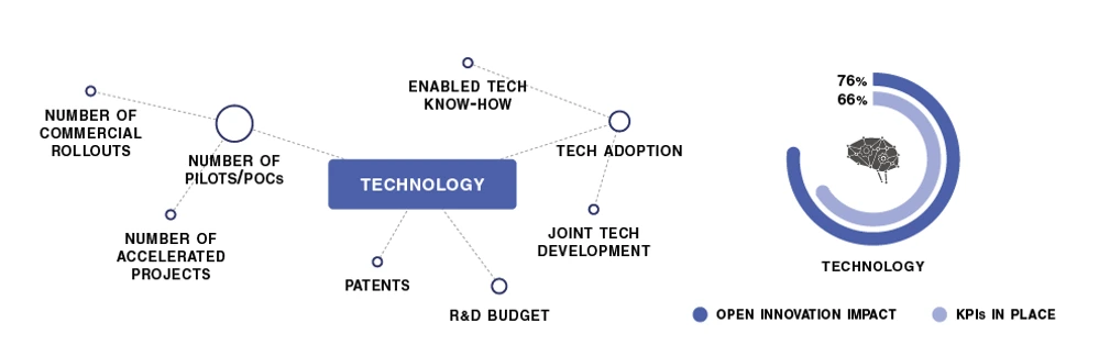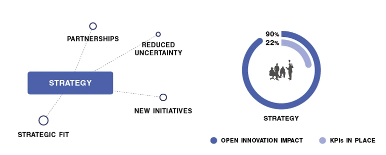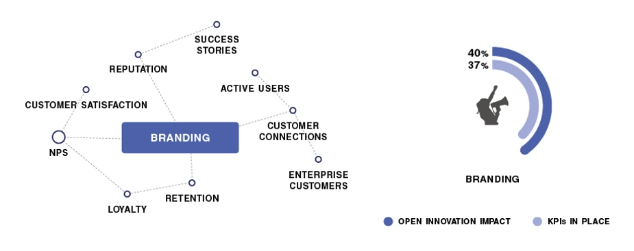 브랜드 가치 향상에 대해서는 최근 관심이 높아지면서 이제 3분의 1 이상의 기업이 브랜드 관련 KPI를 도입하기 시작했습니다. 이를테면, 오픈이노베이션 활동으로 인해 언론이나 업계에서 긍정적 언급이 얼마나 증가했는지, 고객이나 구직자들로부터 혁신기업이라는 인식이 향상되었는지 등의 지표가 고려될 수 있습니다.