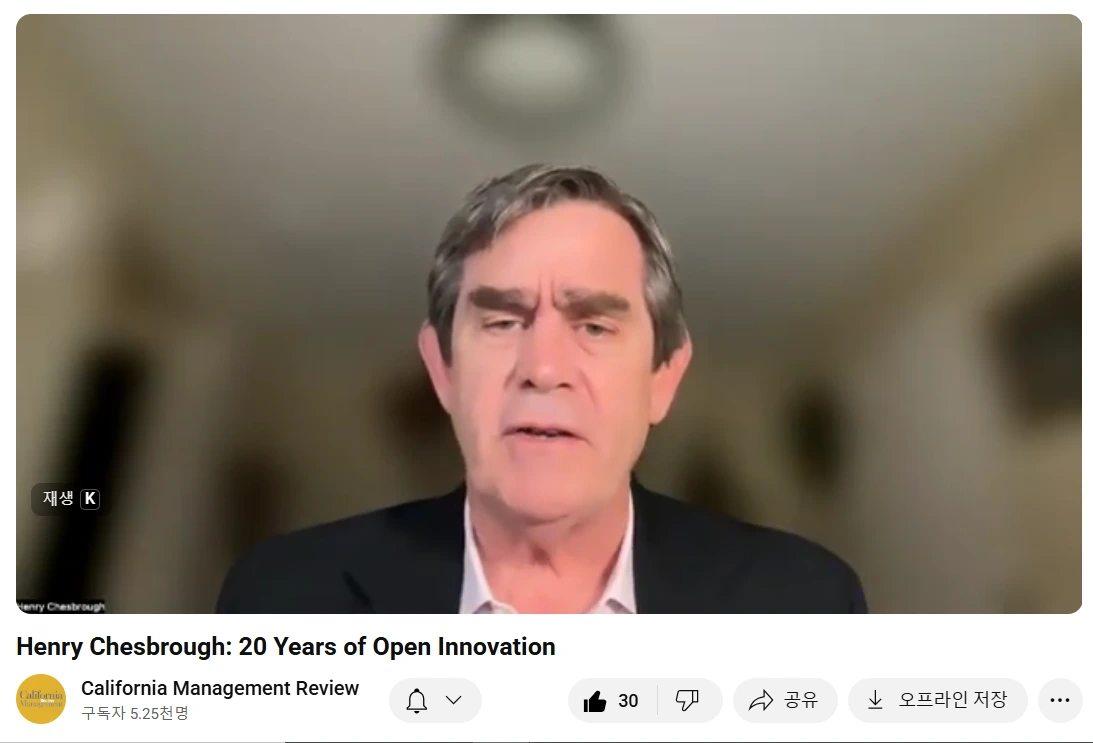 생성형 AI가 나온 시점에, 체스브로는 2023년 그의 새 논문 『Open Innovation: Accomplishments and Prospects for the Next 20 Years』와 유튜브(링크)로 오픈이노베이션의 다음 단계 얘기를 제시했습니다.