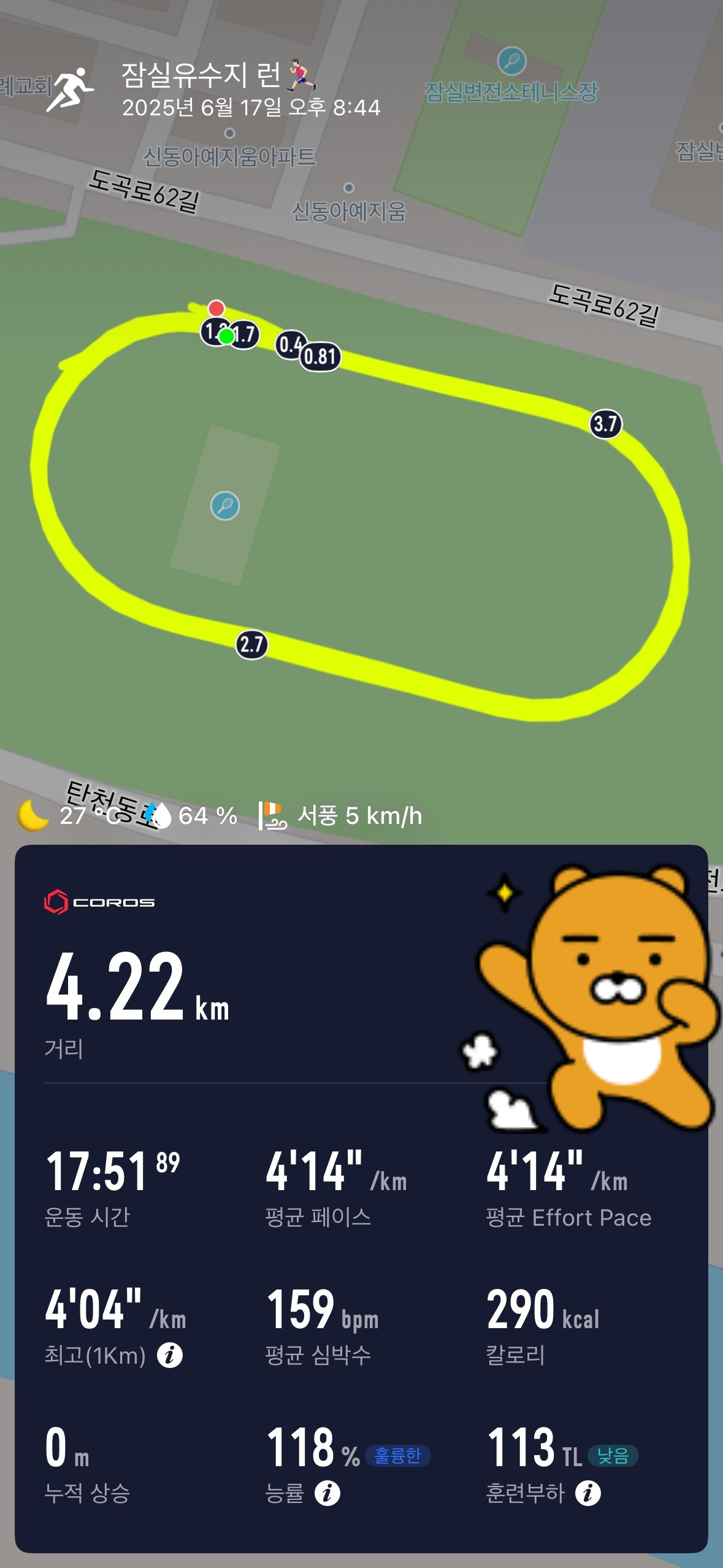 사실 오늘 와드가 카디오성이 강했기 때문에 러닝은 쉬는 게 맞았지만, 한 번 속도를 더 내서 달리고 싶었다.