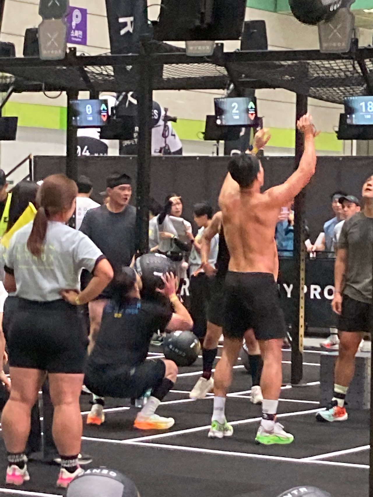 숨을 크게 들이마시고 첫 스쿼트, 그리고 첫 번째 월볼.
