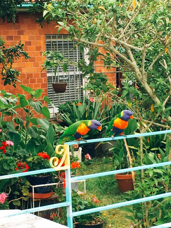 호주사람들은 땅이 어마무시하게 넓어서 인지 삶에 필요한 정도로만 개발하고 자연과 조화를 이루며 사는 데 큰 만족감을 느낀다. 그 만큼 도시 내에 자연이 많이 남아있고 온갖 생명체가 함께 산다. 집 뒷마당에 큰 과일 나무가 있는데 낮이고 밤이고 온갖 새들이 날아와 열매를 따 먹느라 나뭇가지가 턱- 턱- 휘는 소리가 끊이지 않는다. 아침이면, 이게 대체 뭔 소리여 하는 기상천외한 새소리에 잠에서 깬다. 진짜로 정글에서 나는 원숭이 소리같은 소리를 낸다. 위 끼끼끼끼끼끼 !