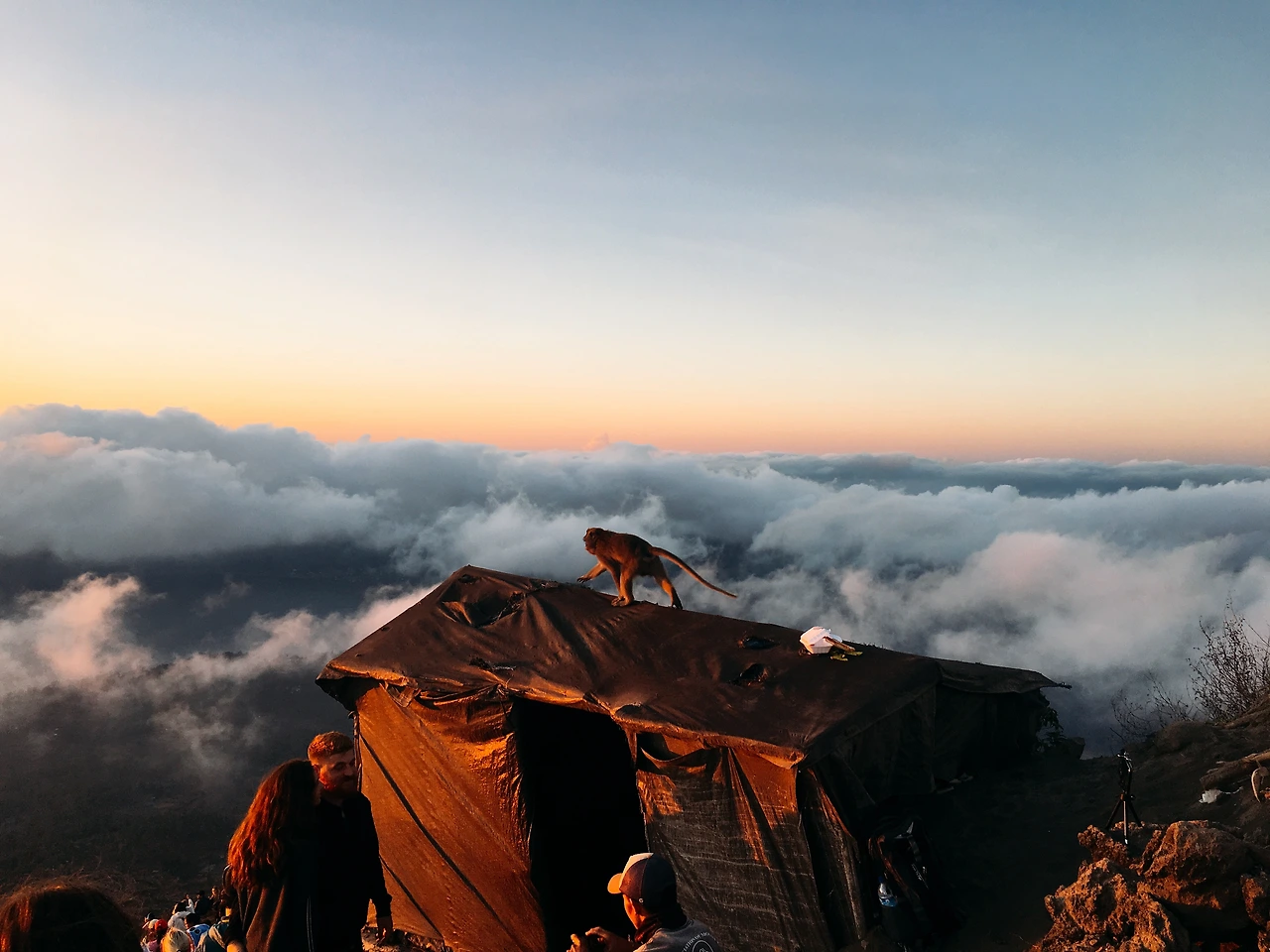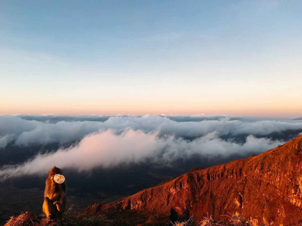 해가 다 뜨고 난 즈음엔 점점 차갑게 식는 체온에 양팔을 비비며 일어나 장난기 넘치는 원숭이들과 사진을 찍다가 하산을 시작했습니다. 정말 다행히도 내려오는 건 훨씬 쉬웠습니다. 내려갈 땐 잘못 디디면 나락으로까지 미끄러져 내려갈 것 같진 않았거든요.