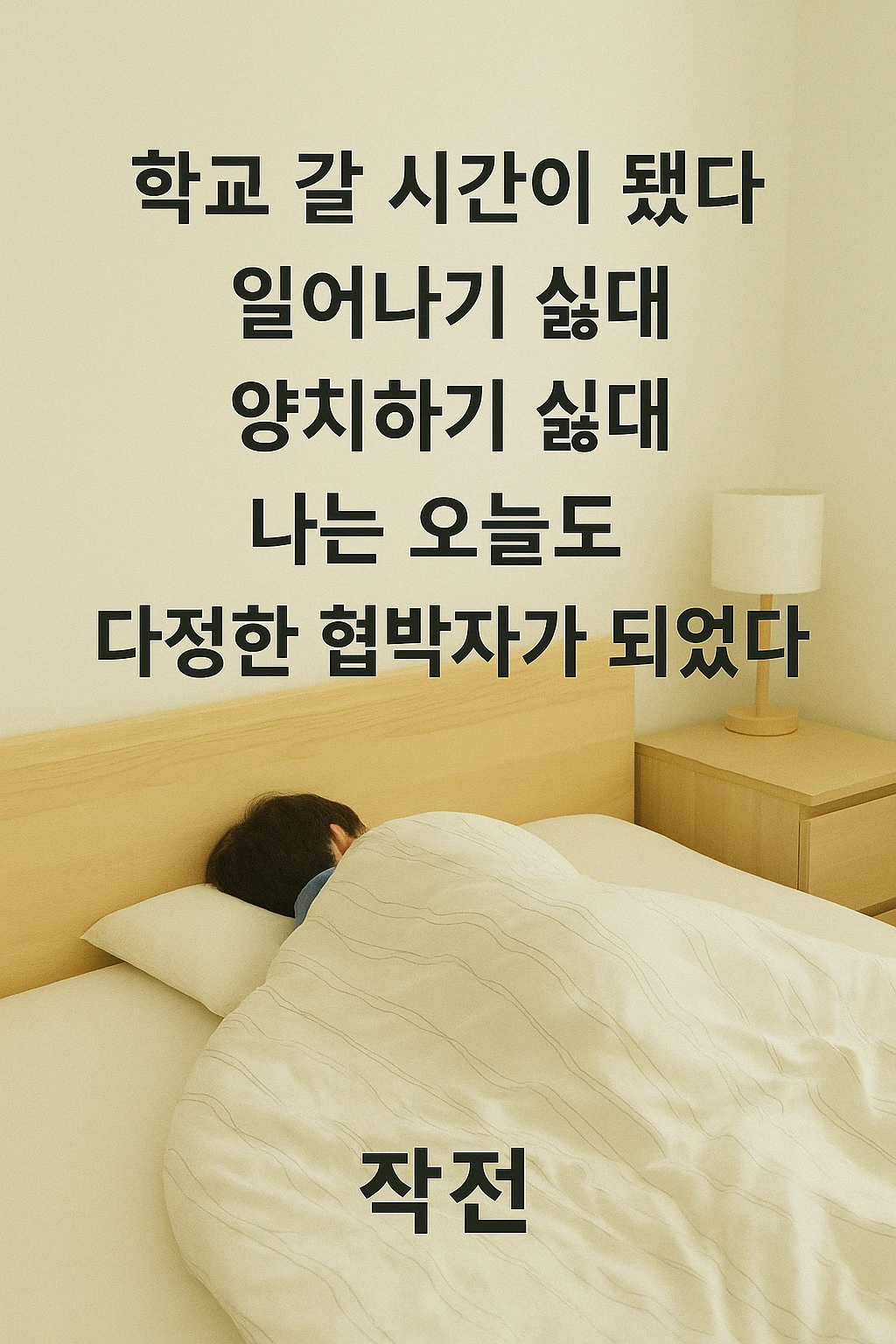 오늘의 작전명: 기상 유도 및 세면 임무대상은 11세 남아.눈은 떴지만 이불과 한 몸.기상 후 행동 없음."지금 안 일어나면 휴대폰 압수야.""양치 안 하면 유튜브 3일 금지.""세수 안 하면 오늘 저녁 반찬 김치뿐이다."나는 오늘도다정한 협박자가 되었다.