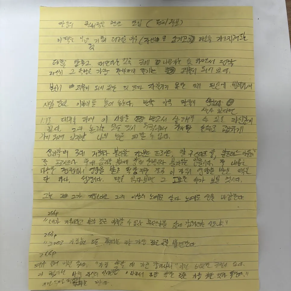 그러나 내가 이토록 분노한 것은 뱀의 혀 같은 간사한 이 자식의 표현 방식 때문이다. 이것을 솔직하게 "너네 속으로는 사실 이런 생각하고 있잖아?" 하며 주장을 펼쳤으면 '그래, 이 자식도 성악설을 기저로 다양한 사유를 하며 고통받는 삶을 살아왔구나.' 하며 맞는 말이지 했을 것이다. 그런데 이러한 말들을 자기 고백식 일기로 변장하여 자신에게 하는 말인 양 표현한 것이 가증스럽고 더러우며 치가 떨리는 것이다.