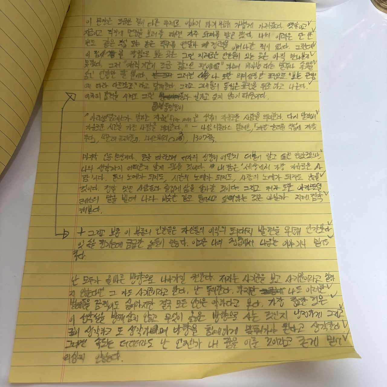 "아리스토텔레스가 말하는 자유인free man은 생각이 자유로운 사람을 의미한다. 다시 말해서 자유로운 시간을 가진 사람을 의미한다." - 나심 니콜라스 탈레브, 「24장 윤리를 직업에 짜맞추다」, 『안티프래질』 , 와이즈베리(2013), 1307쪽.