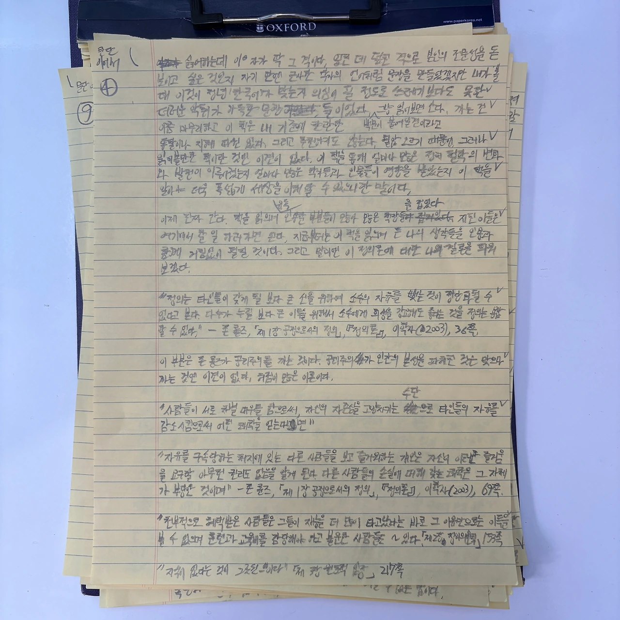 내가 말한 정의론이 왜 변호론이 되어야 하는지 아주 극히 일부분을 가져왔다. 이게 모두 한 페이지 안에서 일어난 일이라는 게 믿기는가? 존 롤즈는 이 책의 처음부터 마지막까지 변호, 보완, 반박, 해명론의 정체성을 잃지 않는다. 집요한 척하나 집요하지 않으며 완벽한 척하나 완벽하지 않다. 회피도 많이 한다. 그래서 당시 학자들도 더 신랄하게 흥이 올라 까댔나 보다.