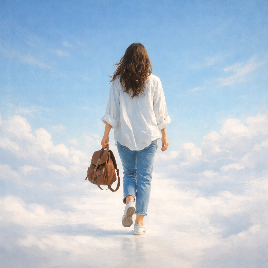 낡은 가방 하나 둘러메고 구름의 뒷길로 들어섭니다.