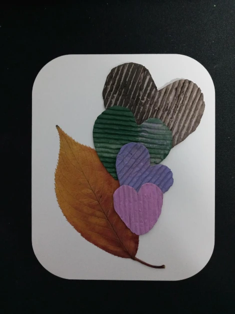 가을이 되면 낙엽을 줍는다. 한 장이나 두 장이라도 매해 꼭 줍는다. 누군가에게는 길거리를 더럽히는 쓰레기일지 모르지만 나에게는 그 해, 그곳, 그 순간을 떠올리게 하는 사진이다. 주운 낙엽과 색칠한 하트 모양 골판지를 모아 한 장의 그림을 만들어 냉장고 문에 붙어 두었다. 버려지는 종이에 주운 낙엽으로 만든 이 그림(다른 이름을 찾지 못했다)이 왠지 좋다. 냉장고 앞을 지날 때면 나도 모르게 자꾸 바라보게 된다.