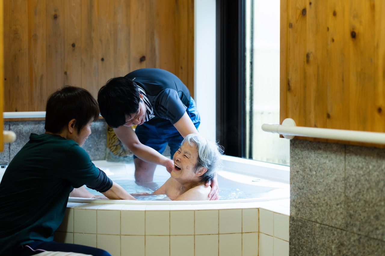 "목욕 지원 서비스가 필요한 할머니와 함께 온천에 가는 것"