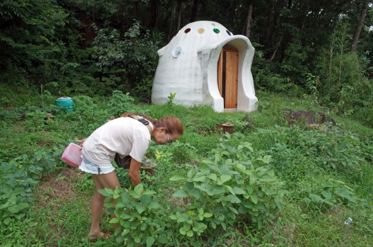 깨끗하게 정비 된 공원에 놓인 것 같이 준코 씨의 어스 백 하우스가 자리 잡고 있습니다.