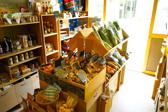 가게에 들어가면, 제철 야채나 평소에 잘 볼 수 없는 신기한 야채, 엄선된 조미료, 과자, 가공식품이 즐비하게 늘어서서 매우 활기가 찹니다. 그 중에서도 가장 압도되는 것은, 야채의 존재감입니다. 푹신푹신한 흙에서 정성스럽게 키운 야채인지라, 당당해 보입니다.