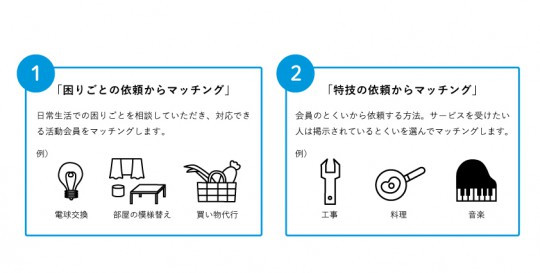 이번 <히토시고토 관>에서 실시하는 유상 자원 봉사의 형태는 크게 두 가지 있습니다. 첫 번째는 누군가의 "곤란함"을 도와줄 사람을 찾는 방법입니다. 예를 들어, 전구가 나가서 도움이 필요한 사람에게, 도우러 갈 사람을 모집해서 전구의 교환을 해달라고 하는 서비스입니다.