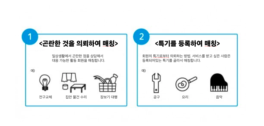 <히토시고토 관> 서비스는 자원 봉사 서비스를 받고 싶은 분뿐만 아니라 자원 봉사에 참여하고 싶은 분을 포함한 모두를 회원으로 등록시키는 구조입니다.