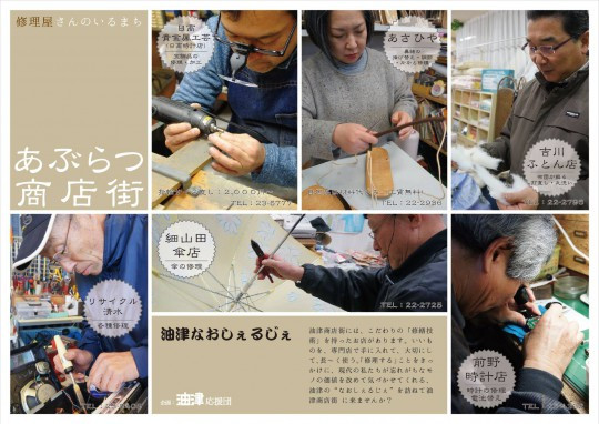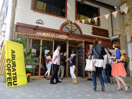 2014년 11월에는 상점가 재생을 촉발 <ABURATSU COFFEE>가 오픈. 옛 이름 그대로 카페를 리노베이션하여 옛날을 그리워하는 세대부터 청소년까지 많은 사람들이 모이는 장소가 되었습니다. 상가를 지속적으로 힘을 불어넣어주기 위해 <주식회사 아부라츠 응원단>도 설립했습니다.