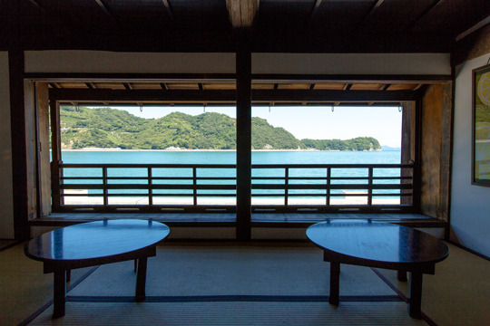 어느 날 미타라이에서 가이드를 하고 있던 이노우에 씨는, 관광 자원 봉사회 회장이 해안에 남아있는 뱃집의 2 층 창문을 열어젖힌 곳을 보게됩니다. 창문이 열리고 깜깜한 방에 빛이 가득 찬 순간, 본인도 모르게 소리를 지르고 말았다고 합니다. 늘 보던 바다가, 창틀에 나누어져 너무나도 아름다웠다고.