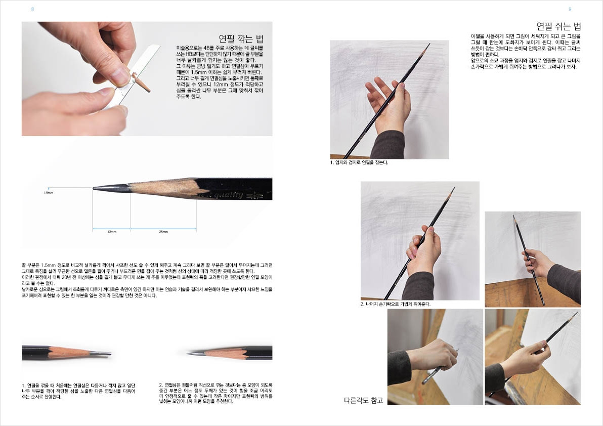 사실 드로잉을 할 때 펜을 잡는 방법은 여러가지가 있습니다. 짧게 잡고 세워서 그릴때와 길게 눕혀서 연필의 면을 이용해 그릴때의 질감이 다릅니다. 가는 선을 여러번 겹쳐서 명암을 조절하기도 하고 흑연을 힘껏 뭉개듯 눌러서 어두운 곳을 더 깊게 표현하기도 하며, 지우개로 뭉개거나 스치면서 빛의 효과를 표현하기도 합니다. 물론 제가 그 많은 기법들을 다 할줄 아는 건 아닙니다. 천천히 배우기로 하고 제가 할수 있는 수준에서 최선을 다하기로 합니다. 오랜만에 정신을 집중해서 그림 한점을 그리고 있자니 마음이 편안해 졌습니다. 취미로 그림을 그리기에 앞서 그림 그리는 행위가 나에게 휴식같은 의미인가 생각해봐야 합니다. 그래야 오래 질리지 않고 할수 있겠죠.