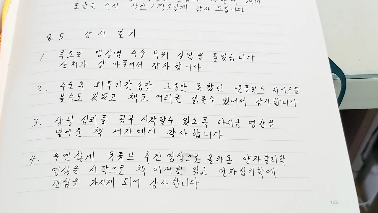 이런 자그마한 순간들이 모여 큰 행복이 된다는 것을 깨달으며, 나는 내 모든 날들을 감사와 함께 살아가고자 합니다. 또 다른 놀라운 발견들과 함께 8월의 나머지 시간을 기다리며, 감사의 마음으로 가득 찬 나의 일기를 마무리합니다.