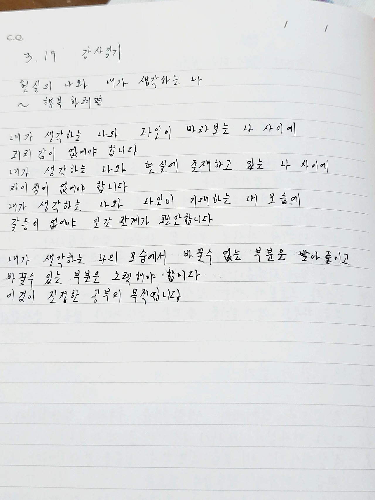 내가 생각하는 나와 현실에 존재하고 있는 나 사이에 차이점이 없어야 합니다