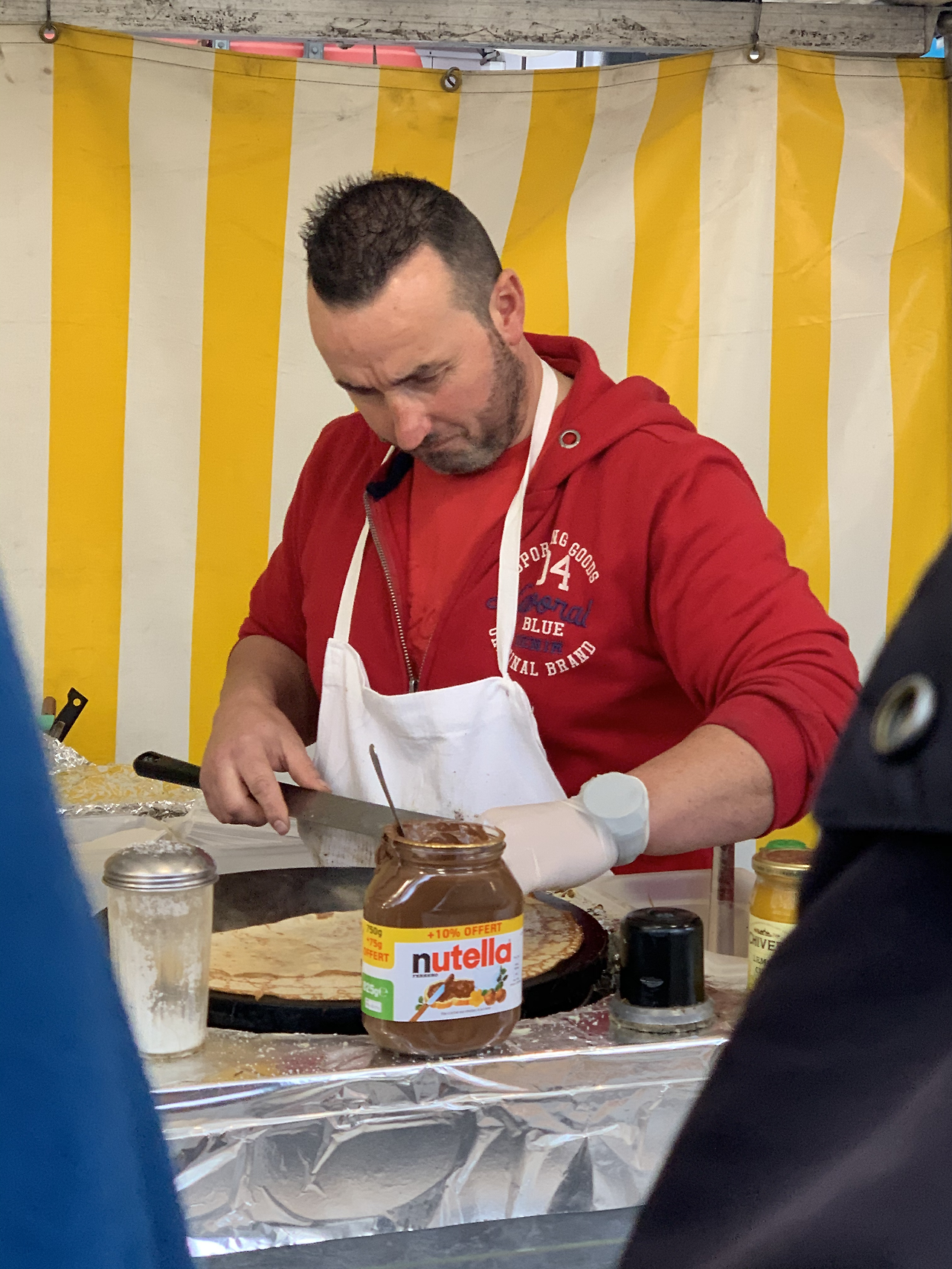 바로 먹을 수 있는 귤이나 사과, 크레페를 사 먹는 곳이었는데...