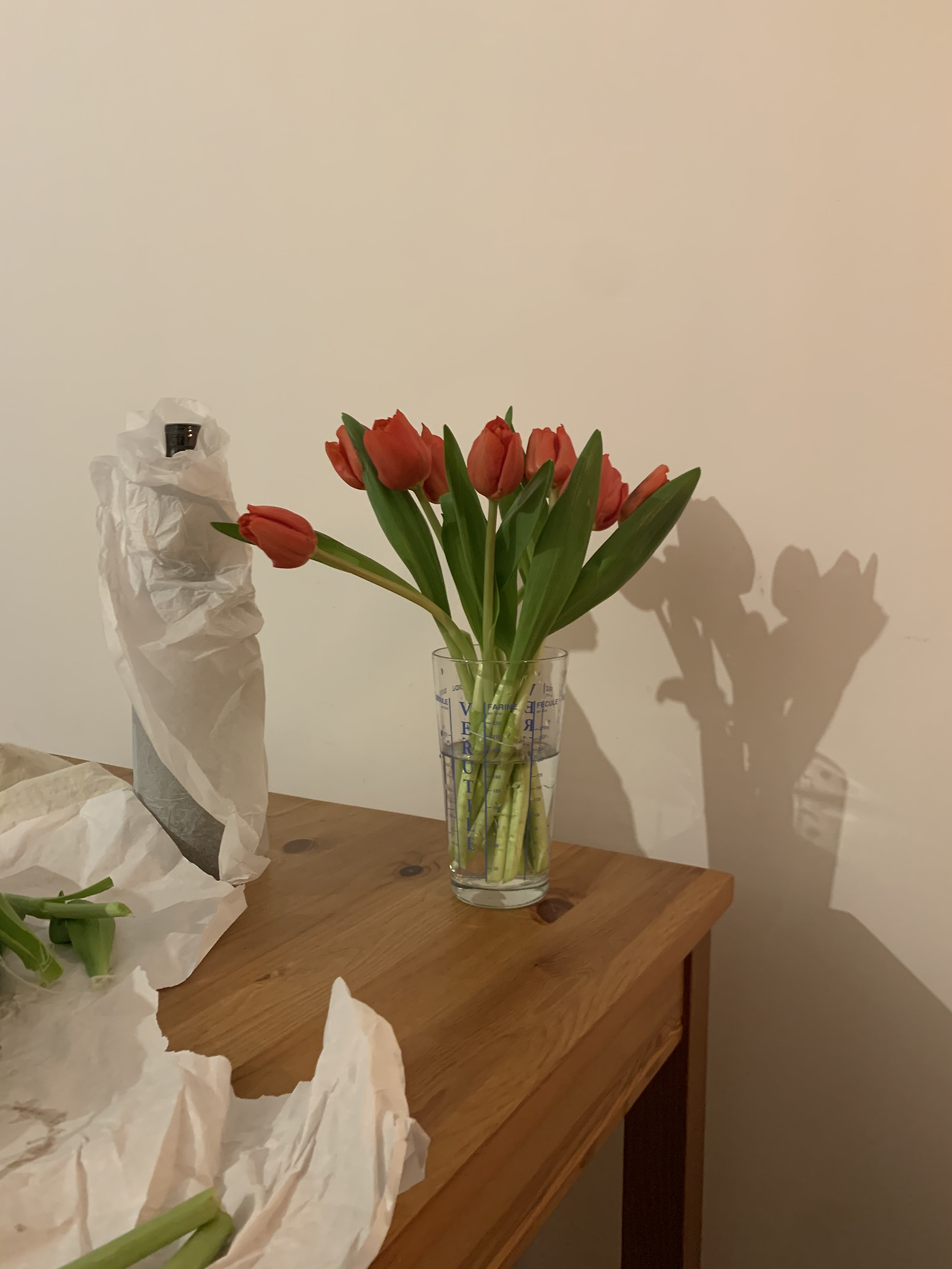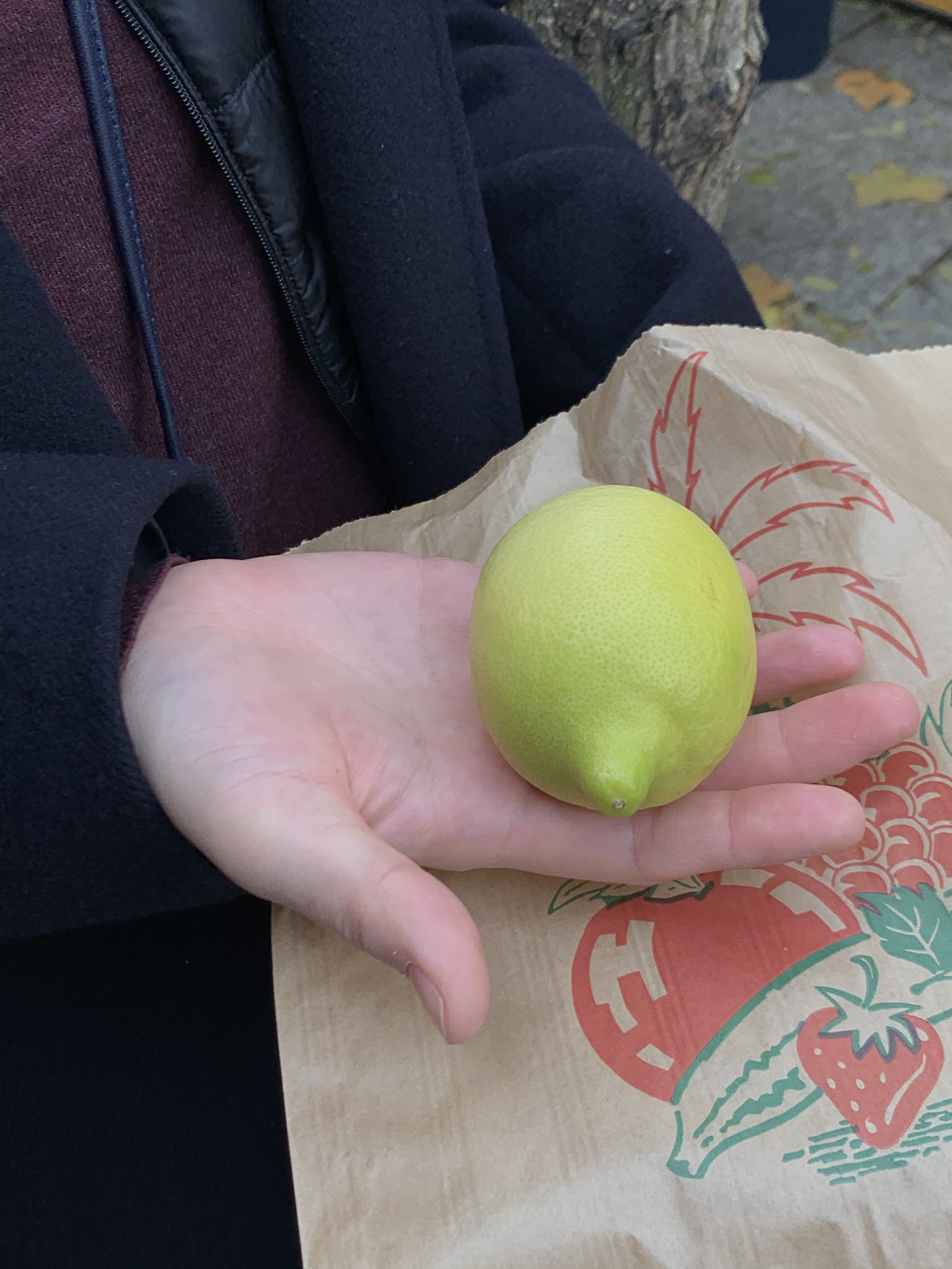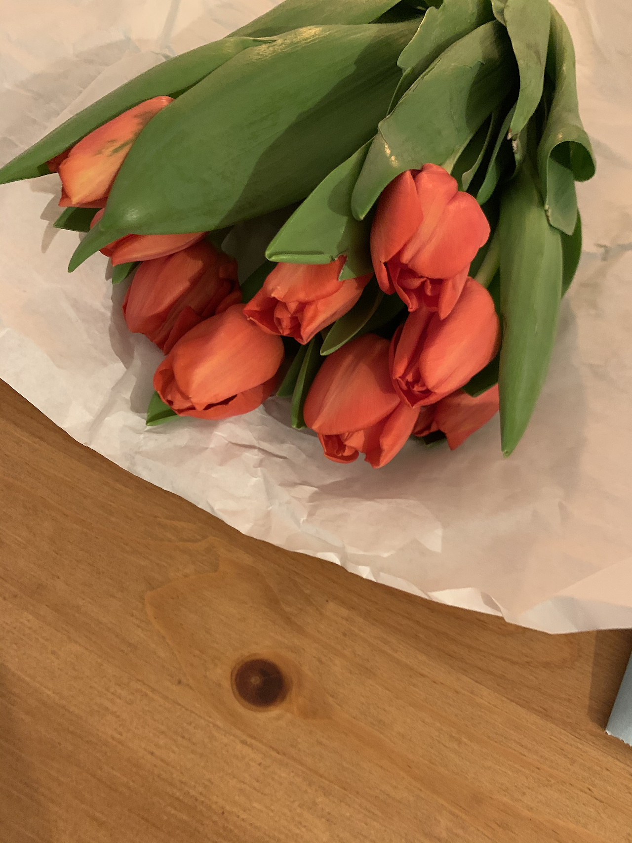 거실 테이블에 둘 튤립을 한 부케, 관자 한 통, 레몬으로 여분 가방이 이미 꽉 찼더랬다.