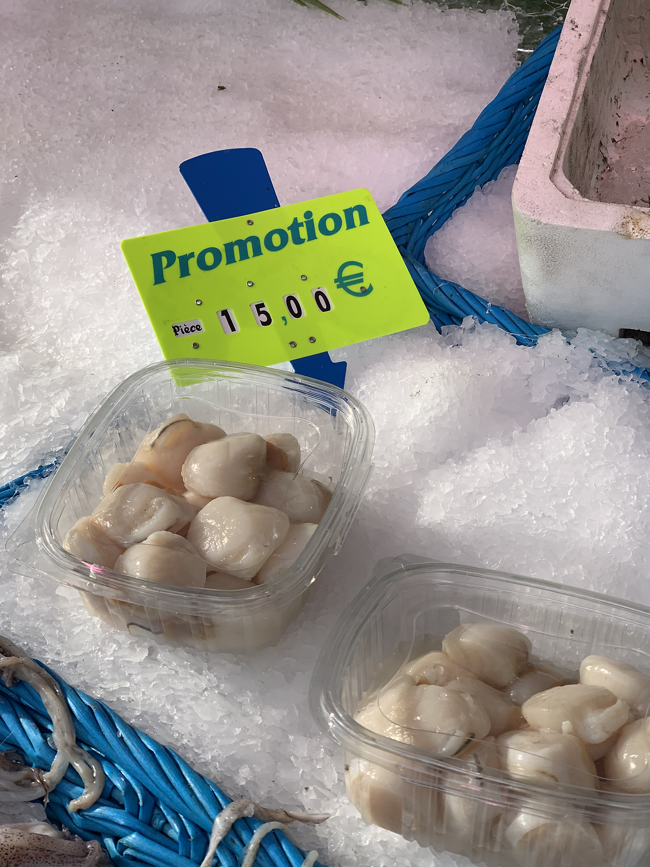 그런 마음으로 생선가게 매대를 올려다봤는데 마침 세일(중요)하고 있던 관자가 놓여 있었고.