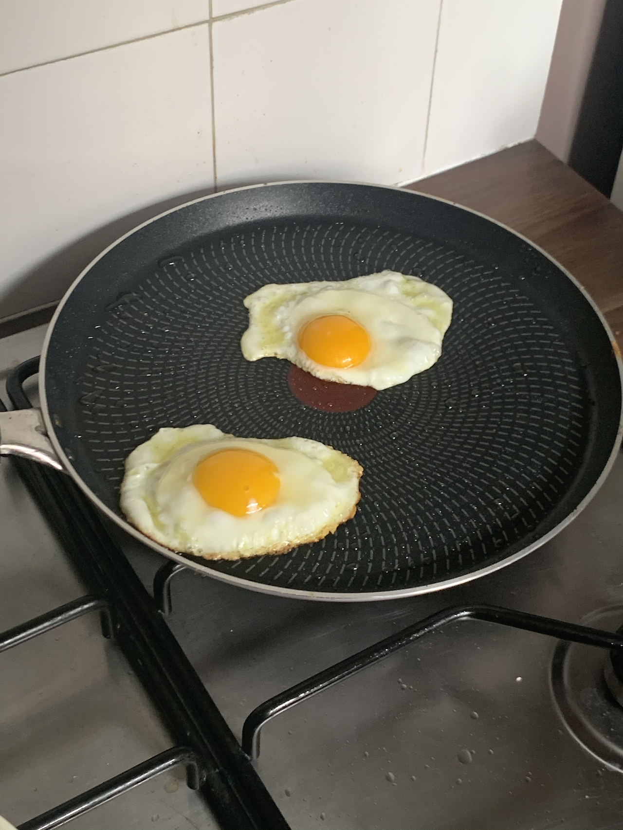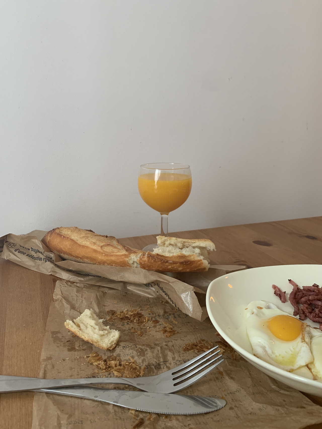 오늘도 잠옷 바람으로 나가 빵과 커피를 사 왔다. 계란과 라흐동을 구워 푸짐한 아침을 먹었다.