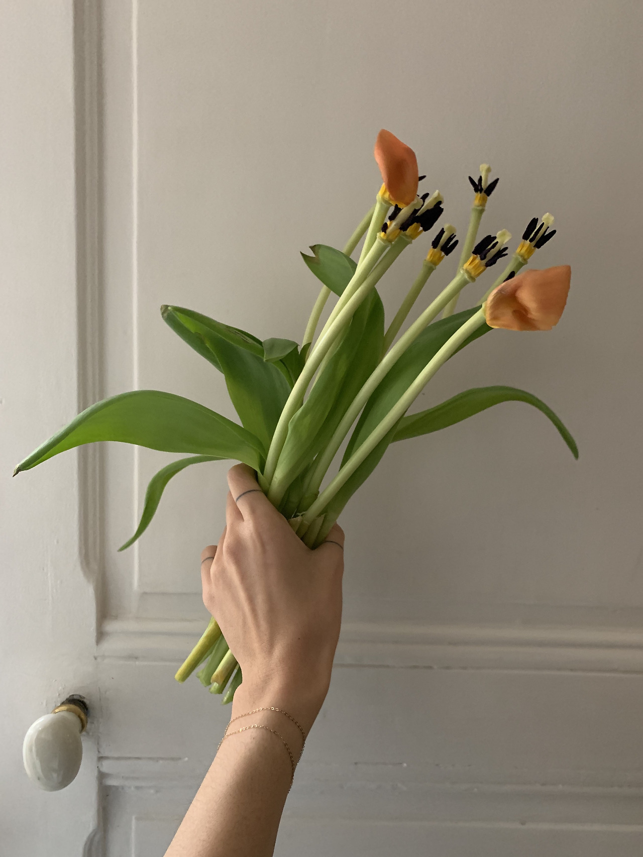 목요일에 바스띠유 시장에서 사 와 꽂아두었던 튤립은 봉우리가 제법 벌어져있었다. 아이러니하게도 사 왔을 때 보다 안 예뻐 보였다.