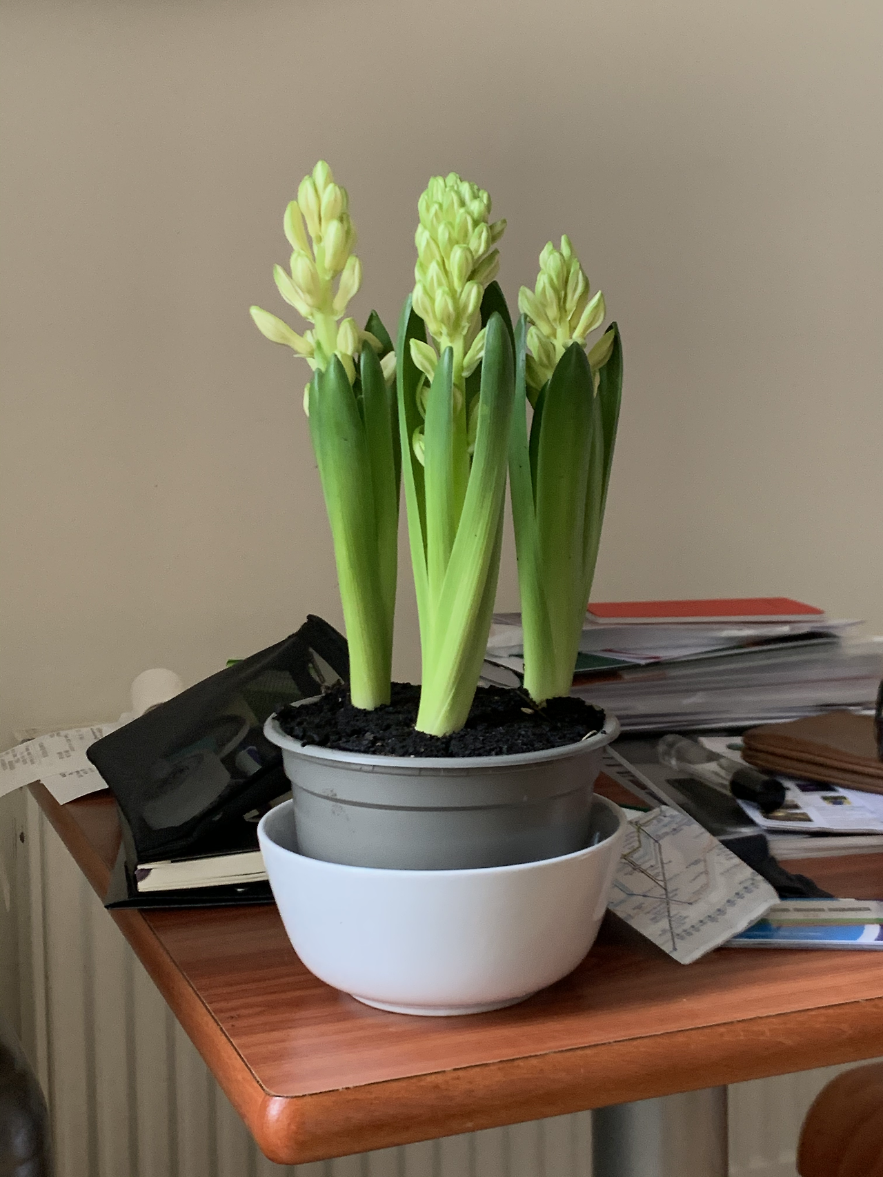 봉우리들이 팡팡 터져있는 히야신스를 보고 있자니 아쉬움보다 고마움이란 감정이 크게 느껴졌다. 초록색에서 흰색으로 변하느라 봉우리들의 색이 본격적으로 밝아질 때쯤, 화분의 흙은 평소와 다르게 금방 푸석해져 있었다. 따라서 물도 평소보다 자주 줘야만 했었는데, 그렇게 흙의 습기를 모두 흡수해내면서 나름의 노력을 들인 시간들이 지나 이렇게 꽃을 피워낸 거였다.