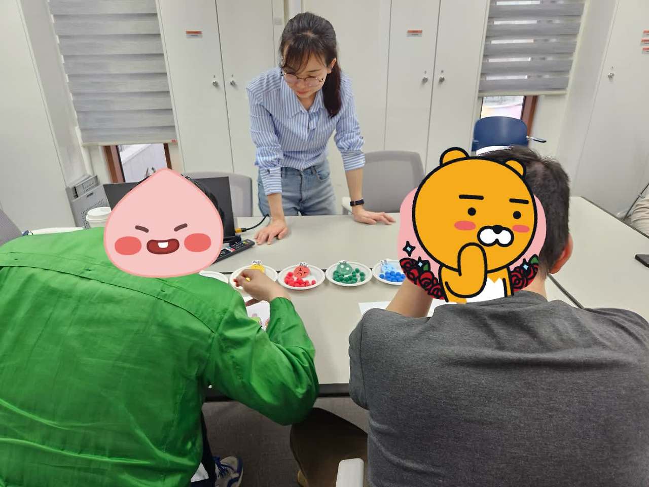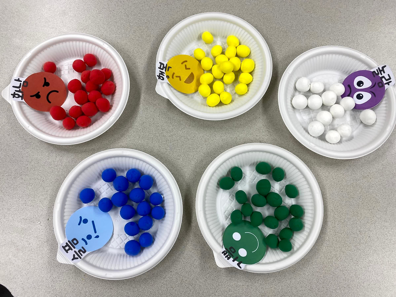 정훈(가명)님은 5개의 감정구슬을 2개씩 공평하게 골라 담았고, 진석(가명)님은 슬픔/화남/놀람 부정적 감정만 골라 담았다. 나는 4개의 감정구슬을 1-2개씩 골라 담았다.