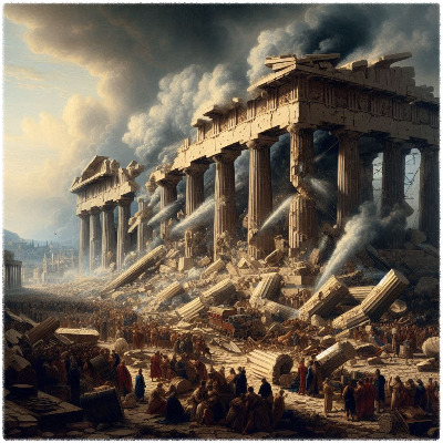 1684년, 베네치아는 아테네와 아크로폴리스를 점령하기 위해 원정대를 보냈습니다. 그 당시 오스만인들은 아크로폴리스를 요새화하고 파르테논 신전을 화약 창고로 사용하고 있었죠. 1687년 9월, 베네치아의 박격포탄이 신전에 떨어지면서 화약들이 폭발하게 됩니다. 이 폭발로 인해 신전의 벽과 기둥들이 무너지고, 그 아래 있던 유물들이 파괴되었습니다.